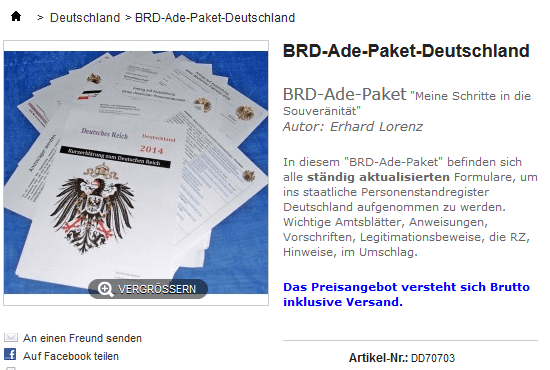 In diesem „BRD-Ade-Paket“ befinden sich alle ständig aktualisierten Formulare, um ins staatliche Personenstandregister Deutschland aufgenommen zu werden. Wichtige Amtsblätter, Anweisungen, Vorschriften, Legitimationsbeweise, die RZ, Hinweise, im Umschlag.
